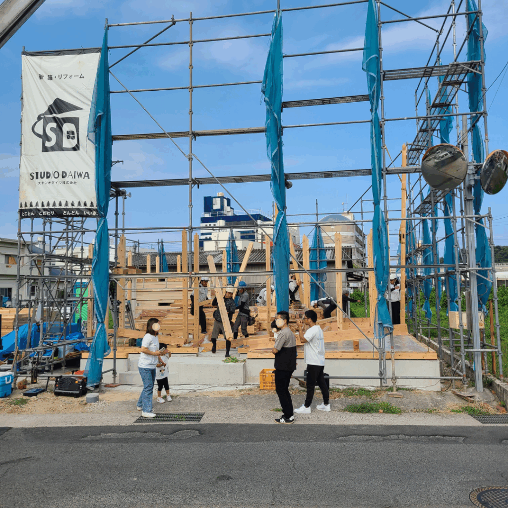 木造住宅における一つの区切りであり、家のかたちが見えるようになるタイミングです。