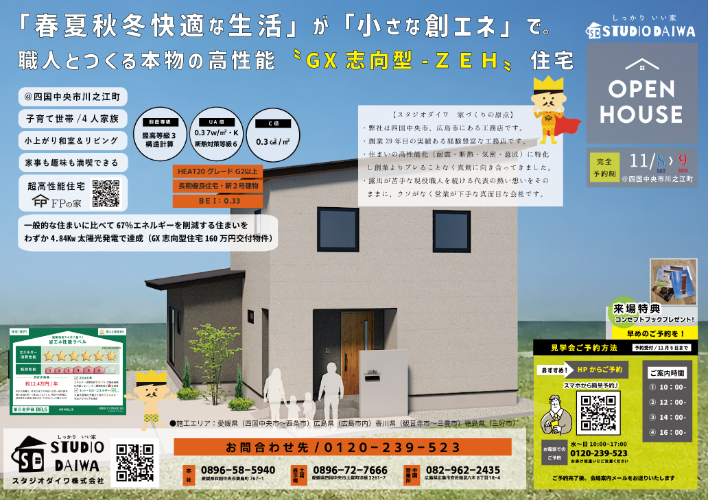 • OPEN HOUSE(11/8.9) 市内初!本物の職人とつくる高性能な〝GX志向型住宅-ZEH〟見学会/予約フォーム
