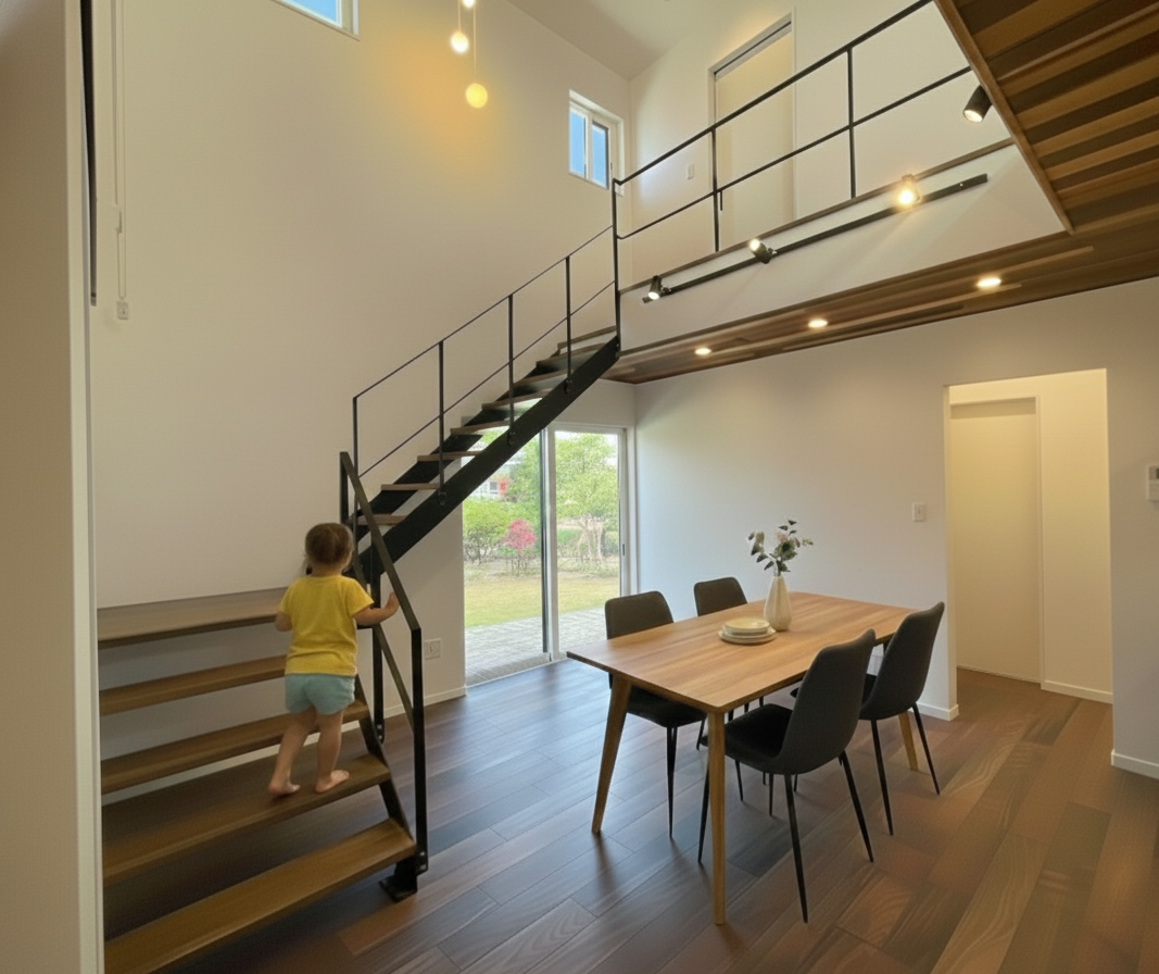 ベースLDKの吹抜けから家族が一つに繋がる家ベース
