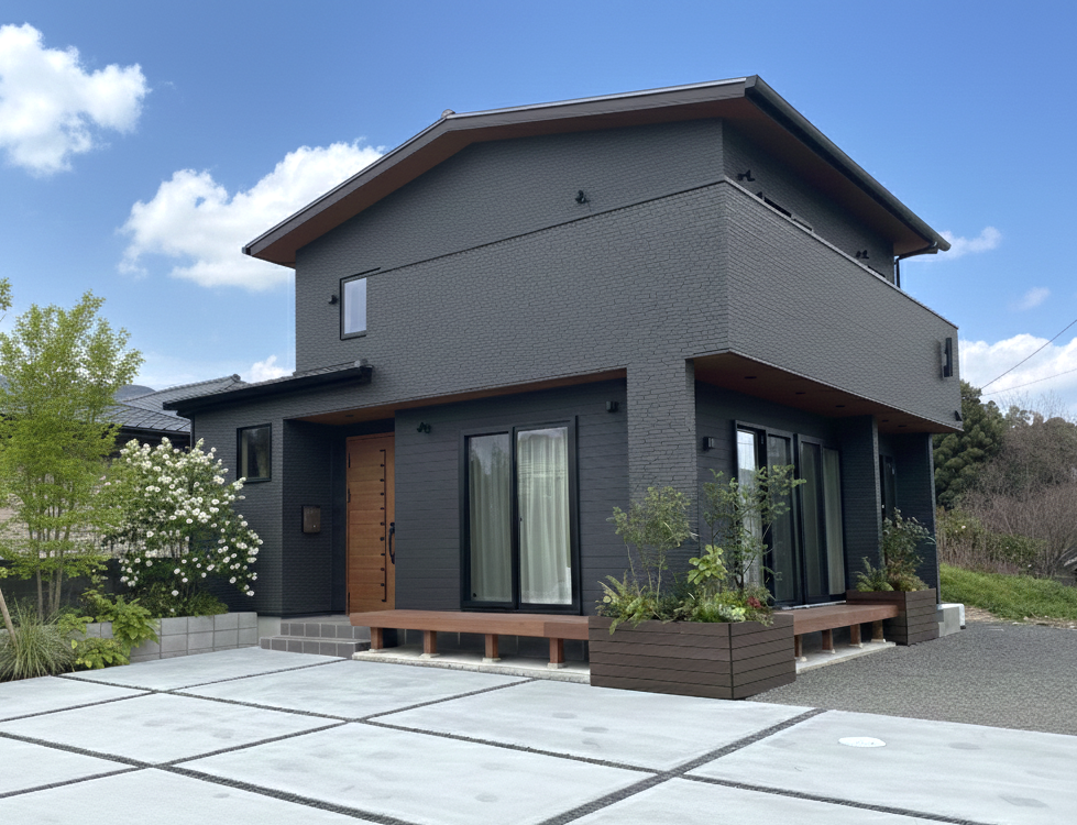 黒を基調にした設えとL型デッキとバルコニーを備える家 UA値0.53W/㎡K 耐震等級3