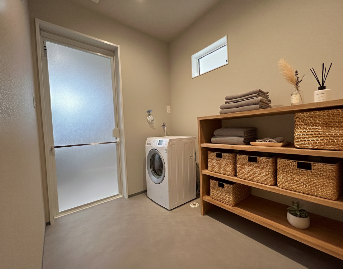 脱衣所にもオーダー造作収納を高さ、幅にもこだわって作りました