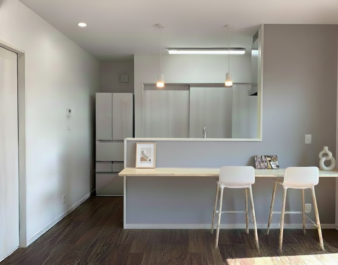 エアコンは模様替えでも動かさないので、早い段階で付ける位置を考えてもよかったかなと思います。