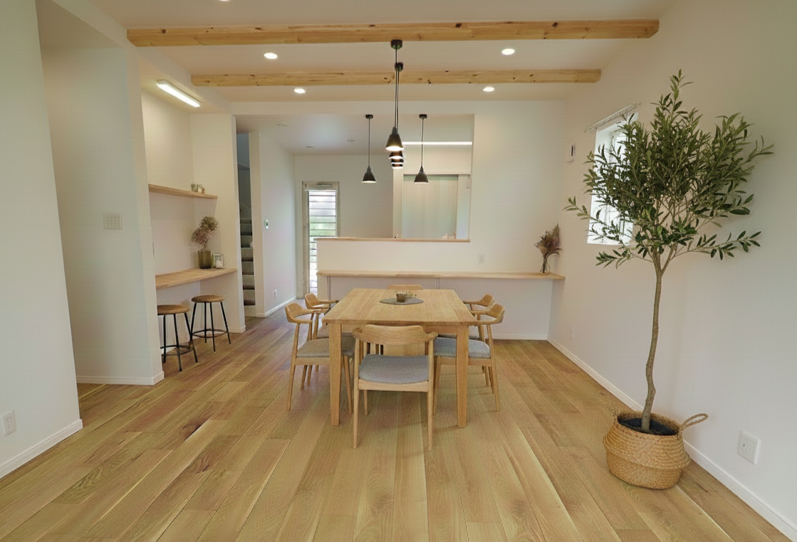 ご家族サイズのこだわりと間取りをギュッと詰め込んで奥様目線の家事ラクが主役のこの住まいは、国土交通省の地域グリーン化事業の採択を受けた高性能、高耐久な長期優良住宅。